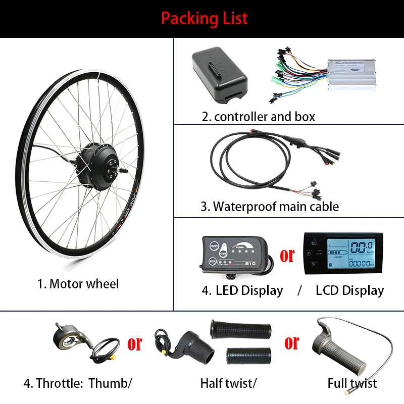 Lors de l'installation, veillez à ce que le câblage ne soit pas inversé. Nos clients peuvent utiliser des freins à disque, mais pas de freins hydrauliques. Kit De Conversion De Vélo électrique Pour Vélo électrique 50,8 Cm, 61 Batterie : la taille des ampères détermine la taille du stockage de la batterie, le stockage de la batterie détermine l’autonomie, la batterie dans notre pack doit correspondre à l'interface de notre contrôleur. Lors de la connexion du contrôleur aux câbles, assurez-vous de connecter les bonnes couleurs au contrôleur. Veuillez choisir soigneusement le type de produit avant de l'acheter. Kit de conversion pour vélo électrique 48 V 1000 W avec écran de mise à niveau, 5 vitesses de réglage de la vitesse pour roue arrière de vélo de 28", 29" et 700 C Contenu de la livraison : 1 moto 1 volant d'inertie à 7 vitesses. 1 contrôleur. 1 écran LCD. 1 papillon normal. Ce kit de conversion de vélo s'adapte aux vélos... Nous ferons de notre mieux pour vous aider., Merci. Si vous souhaitez installer l’écran LCD, veuillez nous contacter pour acheter le contrôleur approprié (Veuillez nous indiquer vos paramètres LCD). La puissance et la tension de la batterie que vous avez achetée doivent correspondre à celles de notre kit. Frein :nous utilisons le câble de frein avec un cordon d'alimentation. Contenu : Moteur 36 V 250 W/36 V 500 W/36 V 800 W/48 V 1000 W Roue arrière 28 Rayons et disque en aluminium Contrôleur 36 V 250 W/36 V 500 W/36 V 800 W/48 V 1000 W Poche pour manette Non Rotation du gaz avec 5 étoiles Poignée de frein Fiche et fusible Faisceau de câbles LCD, via la vitesse et la puissance, veuillez mentionner que l'écran LCD n'est pas inclus dans certains types, veuillez le confirmer avant l'achat Ce kit de vélo électrique comprend tout (sauf la batterie) pour apporter à votre vélo une haute performance qui offre des performances et une fiabilité inégalées. Pour votre sécurité, nous vous recommandons vivement de ne pas conduire par temps de pluie. Kit Conversion Vélo Électrique Moteur Moyeu Arrière Analyse L'écran LCD ne peut pas être connecté à ce kit.