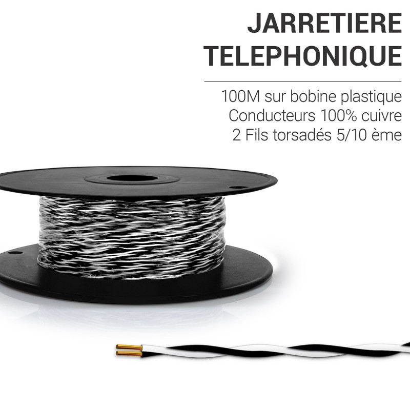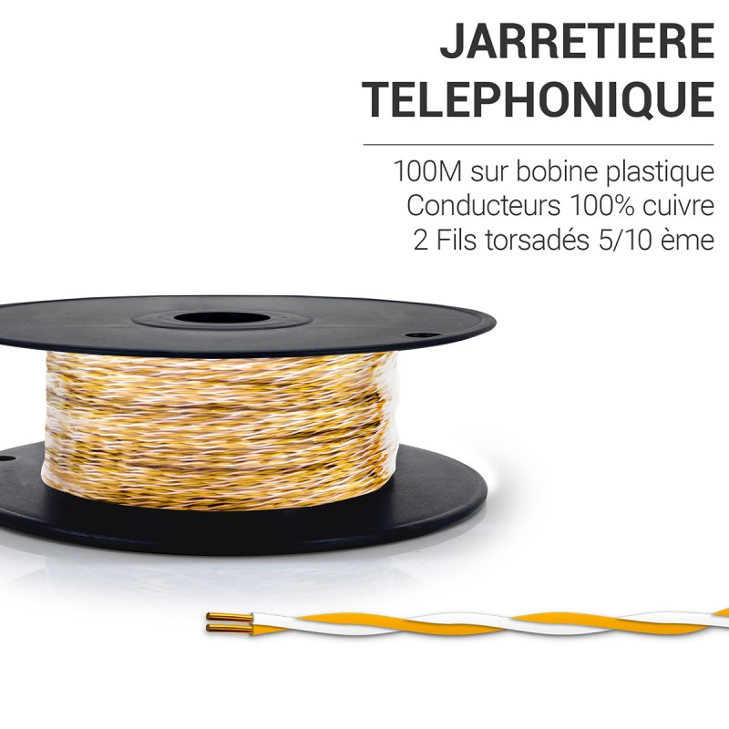 Les Atouts de l'article: Ce fils jarretière téléphonique 2 cond. diamètre 5/10 conditionné sous forme de bobine de 100m permet le câblage interne des répartiteurs généraux ou des sous-répartiteurs.Fils de cuivre et gaine PVC blanc/bleu. Son application nécessite l'utilisation d'outil à puncher Bobine 2 fils pour jarretière téléphonique Utilisation pour câblage intra répartiteur nécessité l utilisation d un outil a puncher compatible avec le type de module recevant les 2 fils bobine de 100m couleur noir/ blanc Conducteur 100% cuivre Diamètre 5/10eme Annonce vente touret plastique noir hauteur 48 et 52cm tourets en occasion : bricolage à vendre sur ParuVendu Mondebarras WB175043649 Jarretiere Téléphone 5/10EME blanc/rouge 100M 5.0 étoiles sur 5, valeur de la note moyenne. Read a Review. Lien sur la même page Jarretière Téléphoniques 5/10EME Jaune / Blanc 100 M 2 Fils Cuivre