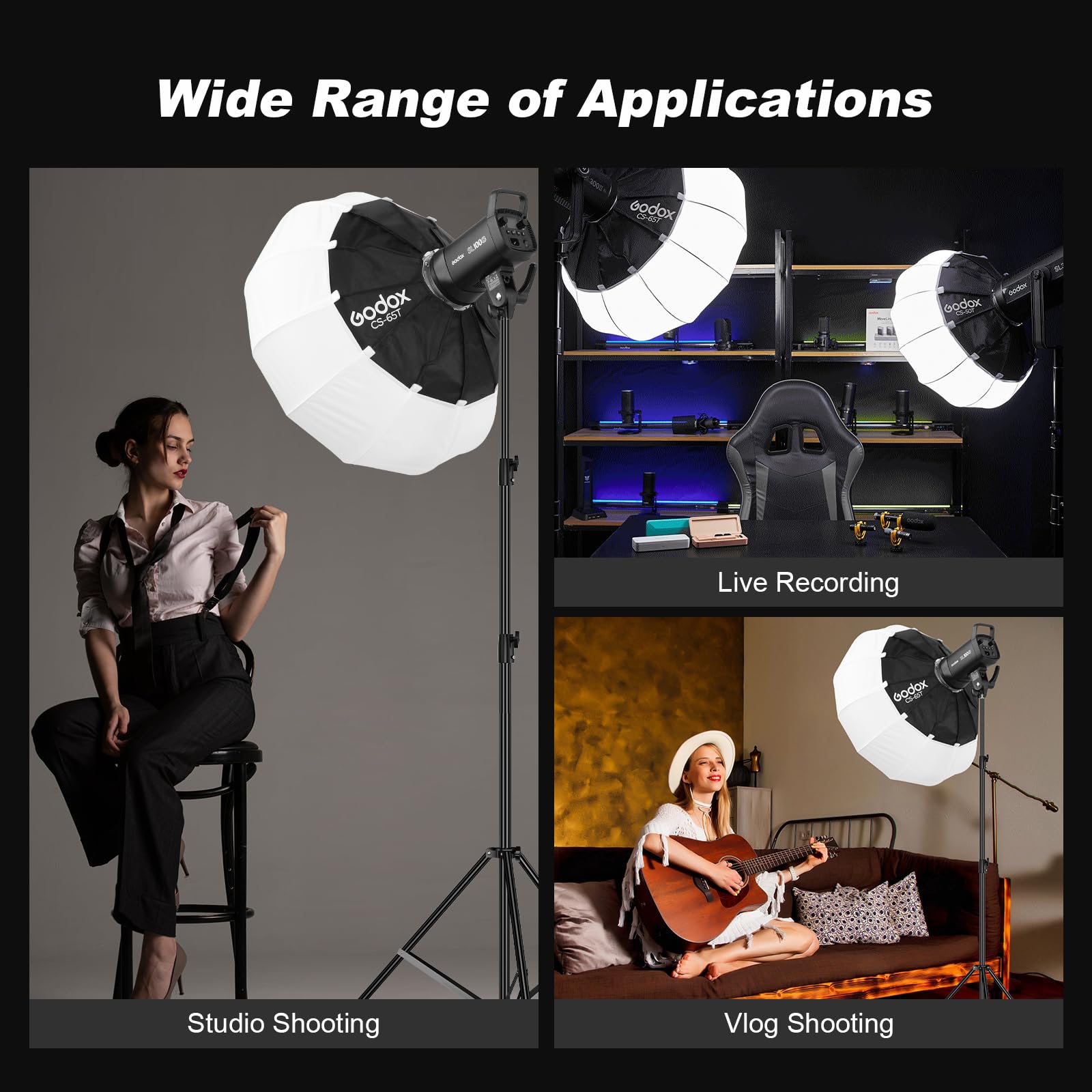💚【Notre service】Pour tout problème, vous pouvez nous contacter, nous vous fournirons un service satisfaisant. Softbox Neewer Godox CS-85D Lanterne Softbox 85cm Modificateur D'éclairage Doux Pour Godox SL-60W SL150W II FV150 AD300PRO AD400PRO AD600BM VL150 VL300 Softbox Smallrig Éclairage doux à 270 ° : la boîte à lumière en forme de boule se caractérise par une lumière douce et uniforme dans toutes les directions, ce qui la rend polyvalente pour les espaces étroits et ouverts. La boîte à lumière Godox CS-85T est un accessoire d'éclairage professionnel avec monture Bowens, conçu pour le livestreaming, les enregistrements vidéo et la photographie Boîte à lumière rapide : la boîte à lumière lanterne GODOX CS-85T est solidement fixée au cadre avec une bande Velcro, maintient les nervures du parapluie en place, de sorte que la boîte à lumière peut être ouverte et fermée en une seconde, ce qui améliore considérablement l'efficacité du flux de travail. Boîte à lumière lanterne Godox CS-85D avec design parapluie et monture de type Bowens. Le diamètre de 85 cm assure mobilité et confort de travail. L'ensemble comprend un squelette, un matériau extérieur et un étui durable Flash Godox lanterne Softbox 360 diamètre 85cm - Monture S - CS-85D Nouvelle boîte à lumière compacte GODOX : la boîte à lumière GODOX CS-85T avec une hauteur de seulement 1,8 m lorsqu'elle est dépliée, la boîte à lumière de la série CS-T avec une profondeur plus faible est un excellent choix pour le streaming en direct et l'enregistrement vidéo dans des espaces restreints.