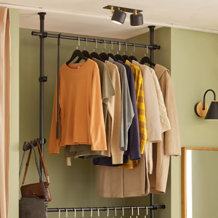 Réalisez votre rêve d'un dressing avec ce système d'étagères flexible. L'étagère pour dressing se fixe simplement entre le plafond et le sol. Grâce à la fonction télescopique, vous trouverez certainement la hauteur adaptée à votre espace Stable : étagère télescopique fabriquée en acier robuste - Chaque tringle à vêtements jusqu'à maximum Charge maximale : 50 kg Dimensions de chacune corbeille: Longeur 83cm x largeur 38cm. Espace de rangement : accrochez des chemisiers, des robes, des vestes et plus encore de manière ordonnée et claire dans l'étagère à vêtements Portemanteau télescopique en détail - Max. Barre Dressing Sans Percage Système De Garde-robe Télescopique Barres Et étagère Aluminium Qqmora Penderie Telescopique Livraison : étagere, Notice de montage détaillée. Capacité de charge total jusqu'à 90kg. WENKO Système de vestiaire télescopique Herkules Basic noir, hauteur 165-300 cm, largeur 75-120 cm. Note moyenne : 5 sur 59Nombre d'avis : 9. 57,62 €. Prix choc L'étagère de dressing se fixe facilement entre le plafond et le sol. en.casa] Penderie Télescopique Garde-Robe Mobile Porte-Manteau Ajustable avec Barres de Penderie Système de Porte-Vêtements Réglable en Hauteur et Dimensions (H x l x P) : environ 165 x 75 x 11 cm - Charge maximale par barre transversale : environ 50 kg - Poids : environ 3,7 kg - Matériau : acier, plastique - Couleur : noir - Système de garde-robe télescopique avec tringle à vêtements - Se fixe sans perçage entre le plafond et le sol - Avec 2 tringles télescopiques réglables - Matériaux robustes pour une grande stabilité - Extensible en largeur et en hauteur pour une utilisation flexible - Idéal pour les placards, les couloirs ou les chambres à coucher Contenu de la livraison - 1 système de garde-robe télescopique - Les articles de décoration ne sont pas inclus dans la livraison Dimensions (H x l x P) : environ 300 x 120 x 11 cm. SoBuy FRG38 Télescopique Garde-Robe Système Herkule, Portant de vêtement penderie largeur et hauteur variablesToutes ces penderies peuvent être combinés ensemble: FRG34, FRG35, FRG38, FRG105, FRG106; FRG107 et FRG109! Contient 3 paniers 1 porte-pantalons et 4 barres porte-vêtement, dont 2 barres porte-vêtements télescopique et extensible, de 67-210cm. Réalisez le rêve de votre garde-robe avec ce système d'étagères flexibles.